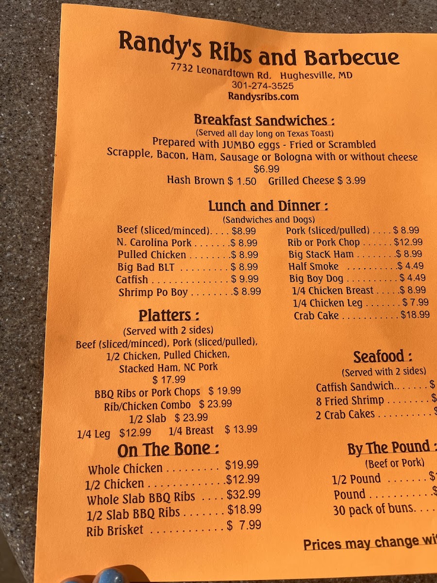 Randy's Ribs & BBQ, nestled at 7732 Leonardtown Rd, Hughesville, MD, serves up authentic Southern barbecue that has earned rave reviews from locals and visitors alike. Renowned for their smoky, tender ribs slathered in a rich, flavorful sauce, every dish is made to order, ensuring freshness. From the creamy, sweet baked beans to the highly praised pulled pork sandwiches, each bite promises a burst of flavor. With fast service and friendly staff, Randy's Ribs & BBQ is the go-to spot for a satisfying meal that’s worth every penny. Don't miss the chance to savor some of the best BBQ in Southern Maryland!